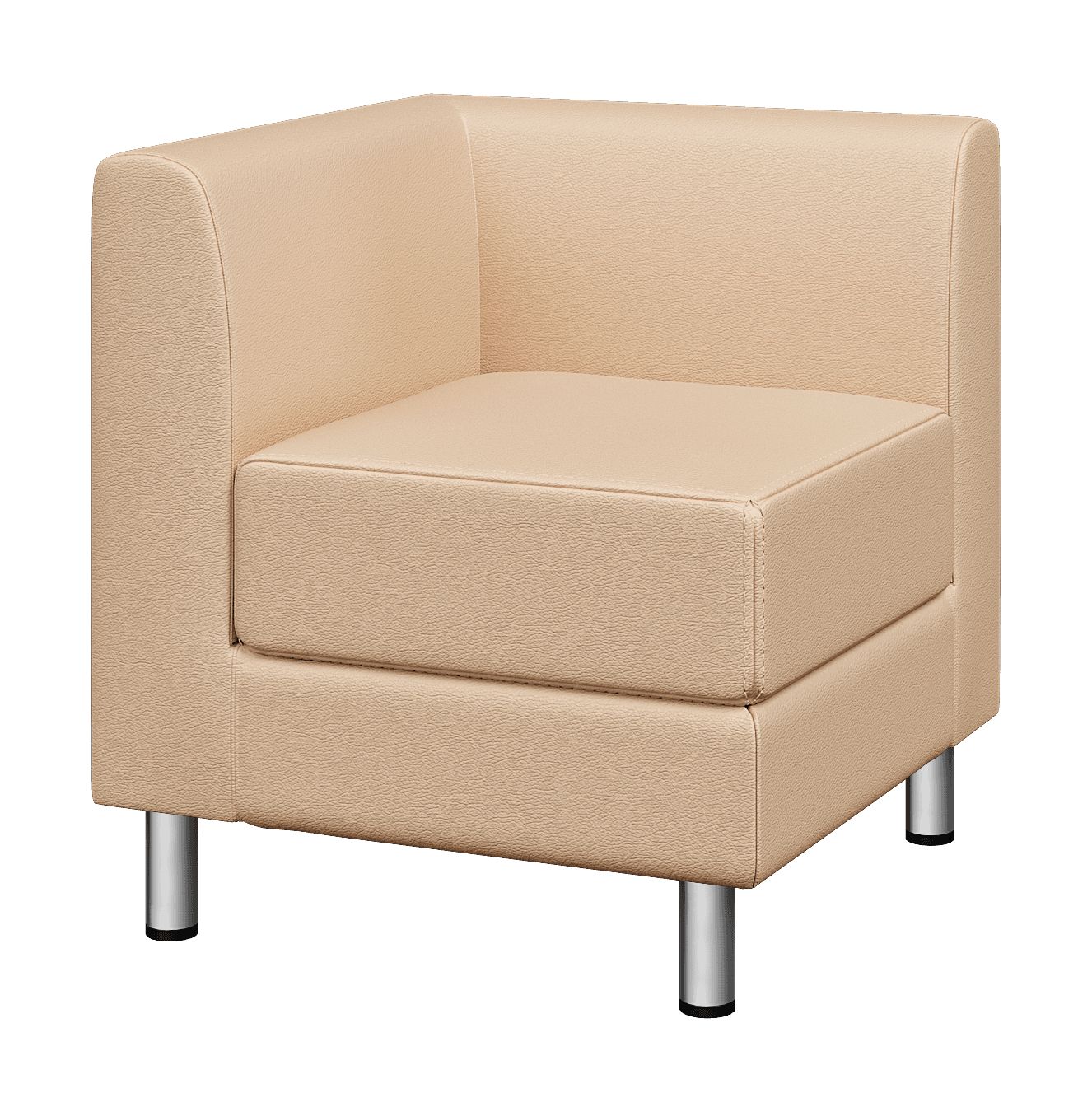 Отличие углового модуля от замыкающих элементов с левым или правым подлокотником - расположение швов на подушке сиденья. У углового элемента они есть с обеих сторон. Поскольку к ним будут присоединяться соседние секции. Наличие данных швов обеспечивает более аккуратное их соединение и эстетичный вид конечной конфигурации мебели.