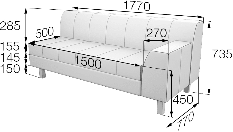 Размер (мм): 1770х770х735