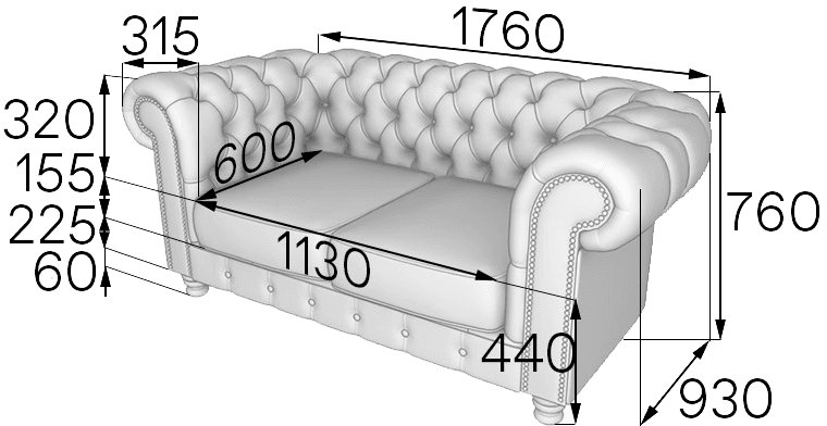 Диван двухместный Честер-Люкс