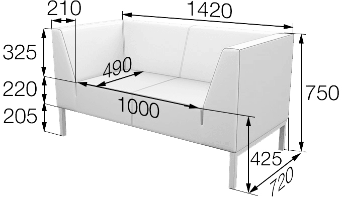 Стильные П-образный опоры высотой 205мм обеспечивает простоту и легкость уборки. Поэтому диваны РАЙТ прекрасно впишутся не только в офисные интерьеры, но и будут актуальны для медицинских клиник, школ и детских садов, где требуется частая уборка и предъявляются высокие требования к гигиене.