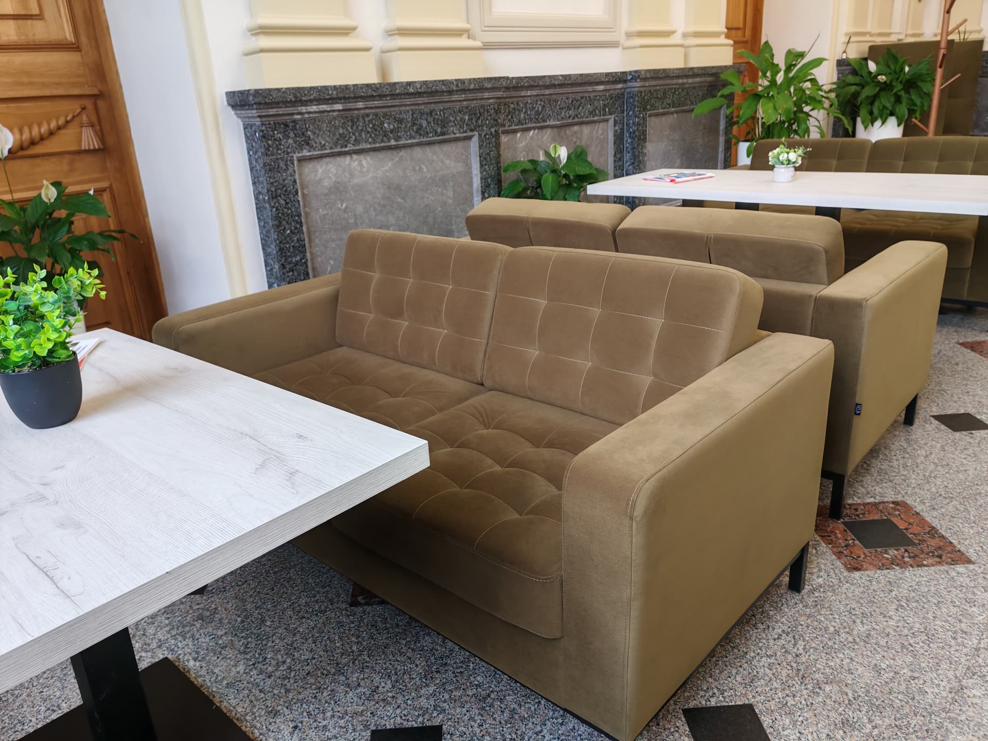 Коллекция Космо завоевала доверие рынка и производится нами уже более 5 лет. Основным преимуществом является наличие модулей, помимо классических диванов и кресел. Модульность обеспечивает огромную вариативность расстановки под любой запрос, а классический дизайн подстраивается под любой интерьер.