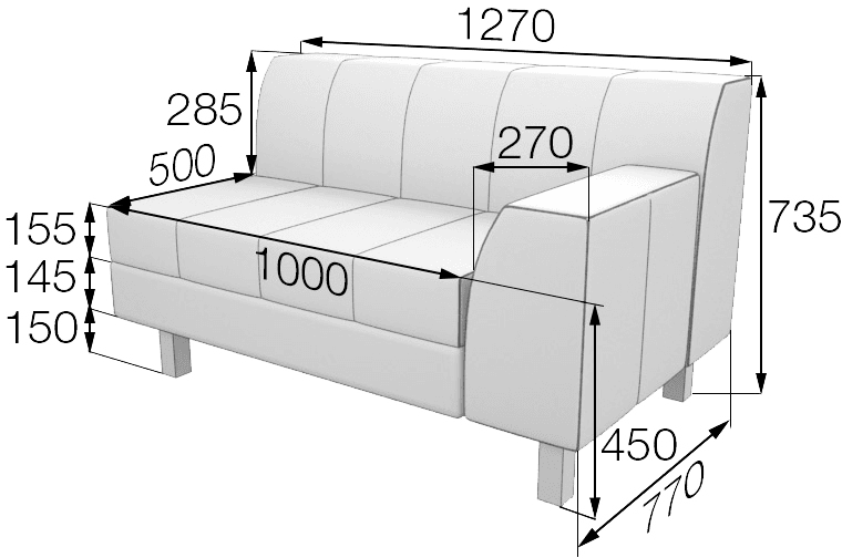 Двухместный модуль ФЛАГМАН с левым подлокотником может быть основным или замыкающим элементом в мебельной конфигурации. Для обычного углового дивана модуль будет основным. В сложной конфигурации модуль может выступать в качестве увеличенного замыкающего элемента. С его помощью можно наиболее рационально меблировать интерьер и организовать максимум комфортных посадочных мест.