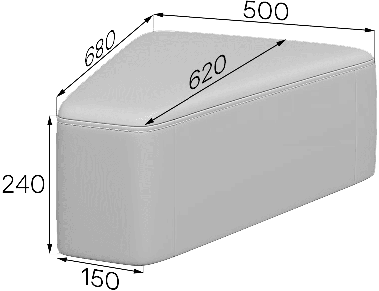 "Парящий" модуль СМАРТ имеет оригинальную треугольную форму. Он предназначен для создания плавных поворотов в мебельных композициях. Модуль расширяет пространство основного посадочного места, делает его более комфортным. На нем удобно разместить сумку или телефон.