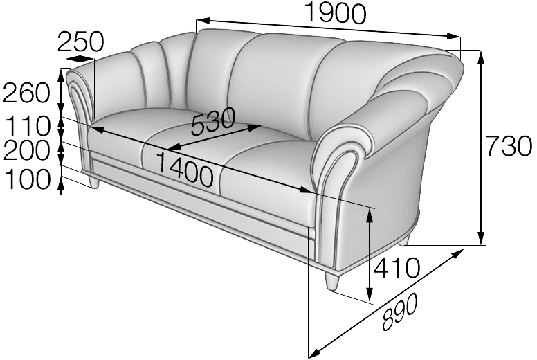 Размер (мм): 1900х890х730