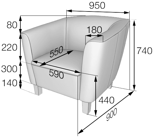 Размер (мм): 950х900х740
