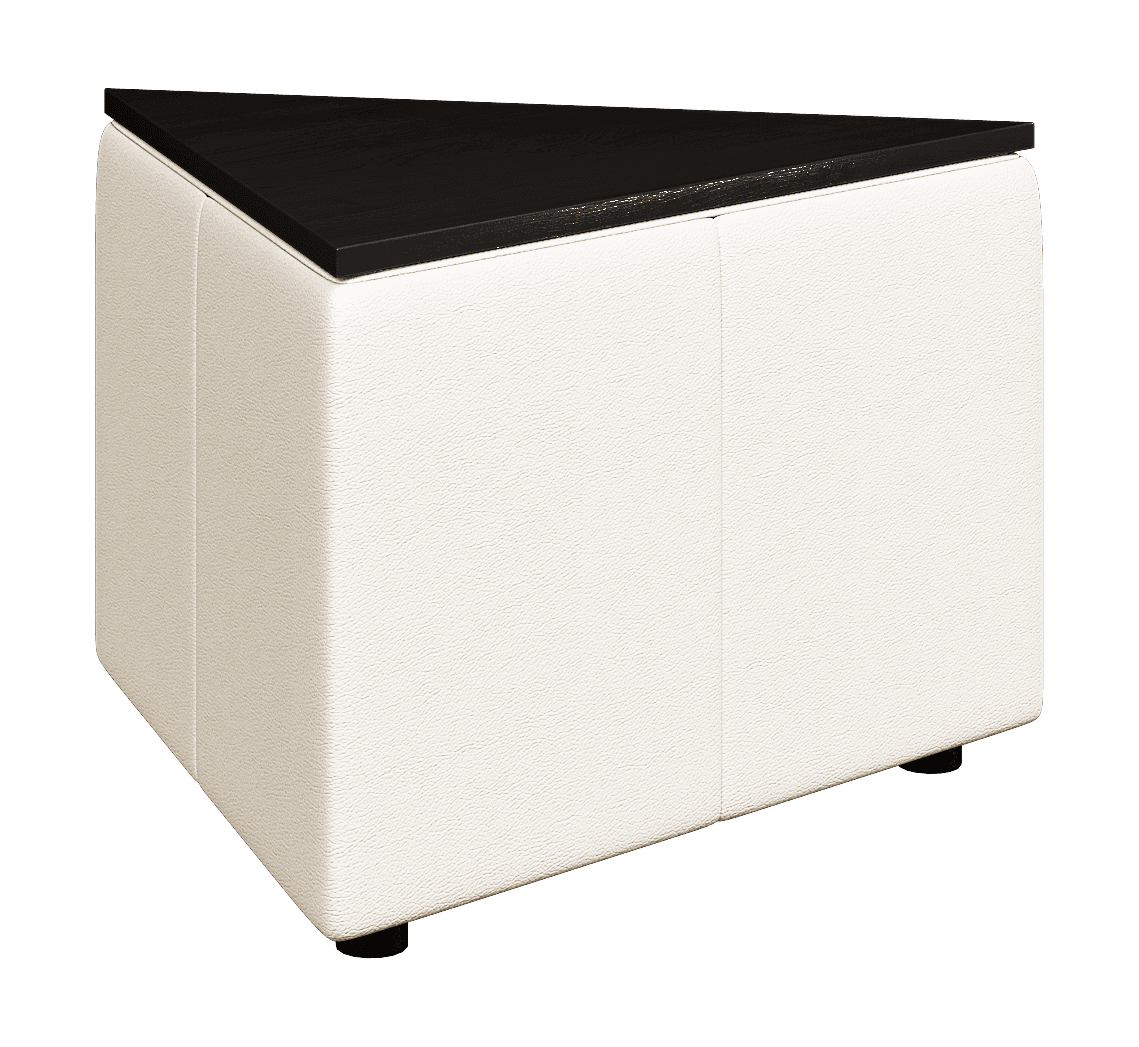 Возможностей размещения треугольного столика ОРИГАМИ достаточно много. Он может использоваться, как самостоятельный элемент или встраиваться в композицию. Из них можно собирать составные столики или использовать для формирования прямых углов в композиции.