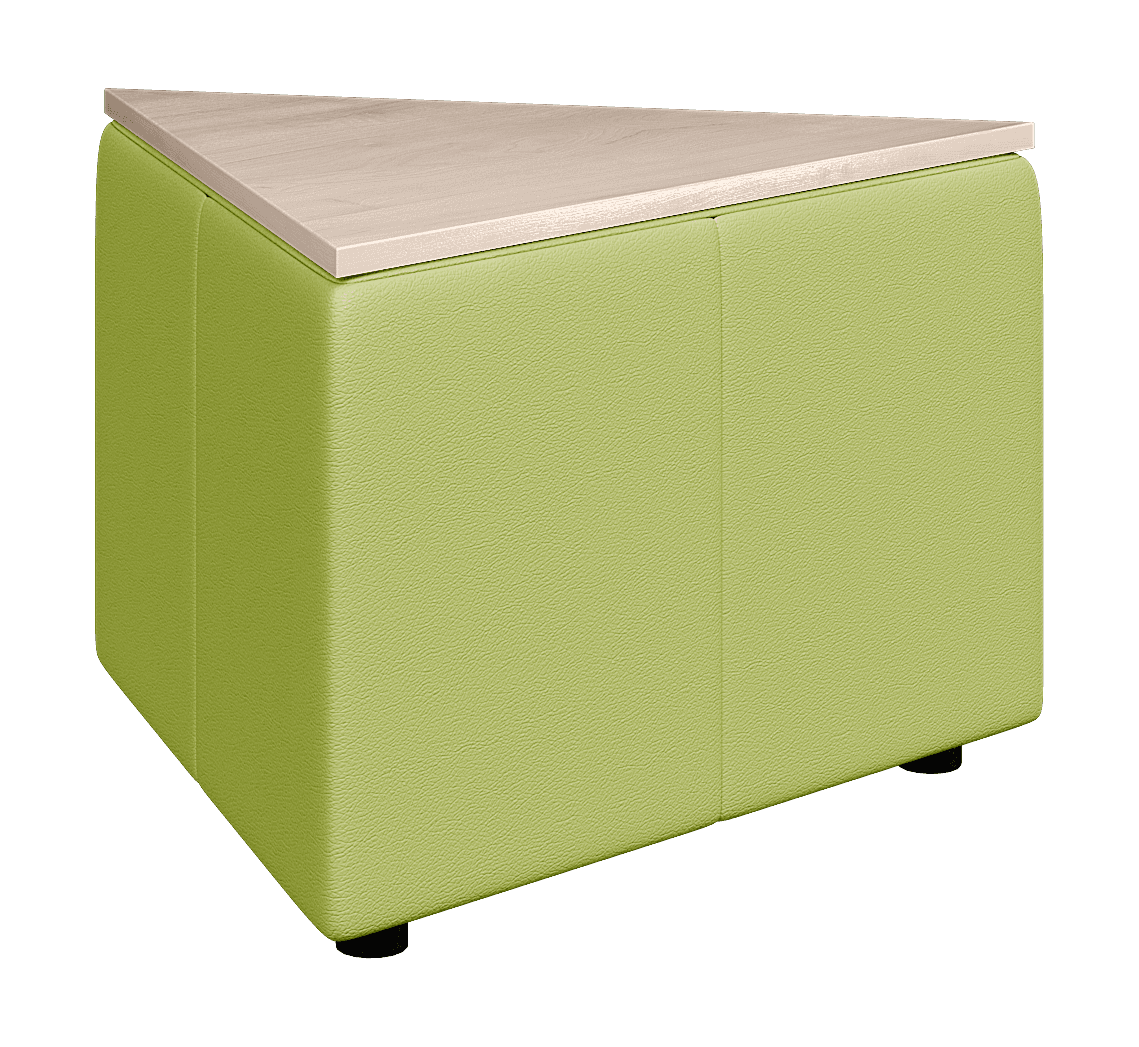 Возможностей размещения треугольного столика ОРИГАМИ достаточно много. Он может использоваться, как самостоятельный элемент или встраиваться в композицию. Из них можно собирать составные столики или использовать для формирования прямых углов в композиции.