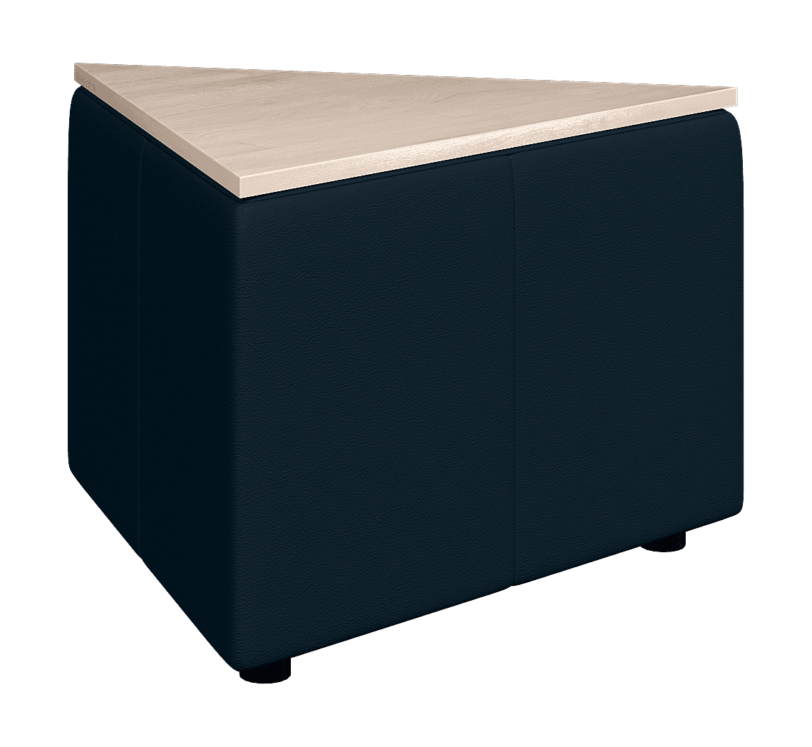 Возможностей размещения треугольного столика ОРИГАМИ достаточно много. Он может использоваться, как самостоятельный элемент или встраиваться в композицию. Из них можно собирать составные столики или использовать для формирования прямых углов в композиции.