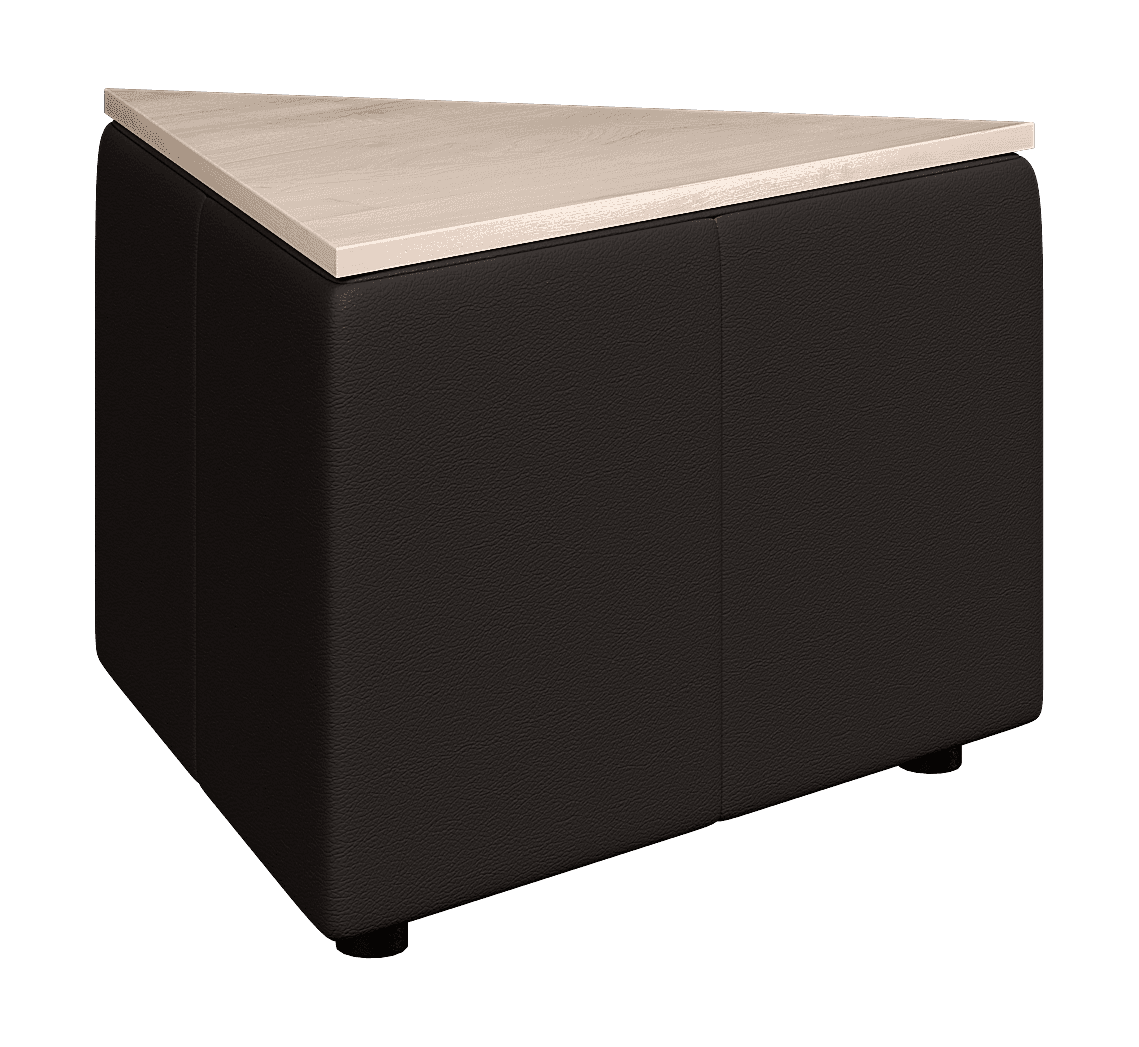 Возможностей размещения треугольного столика ОРИГАМИ достаточно много. Он может использоваться, как самостоятельный элемент или встраиваться в композицию. Из них можно собирать составные столики или использовать для формирования прямых углов в композиции.