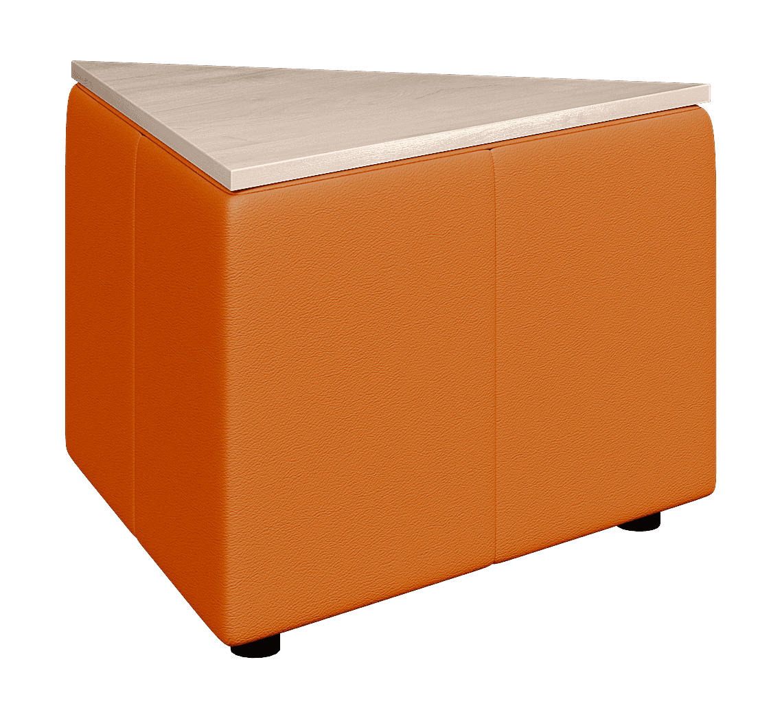Возможностей размещения треугольного столика ОРИГАМИ достаточно много. Он может использоваться, как самостоятельный элемент или встраиваться в композицию. Из них можно собирать составные столики или использовать для формирования прямых углов в композиции.