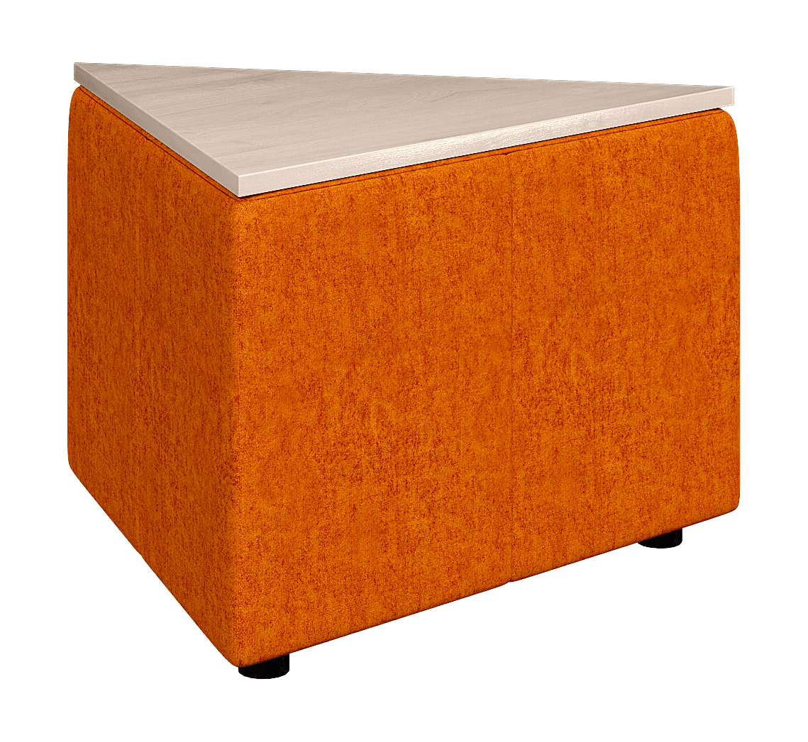 Возможностей размещения треугольного столика ОРИГАМИ достаточно много. Он может использоваться, как самостоятельный элемент или встраиваться в композицию. Из них можно собирать составные столики или использовать для формирования прямых углов в композиции.