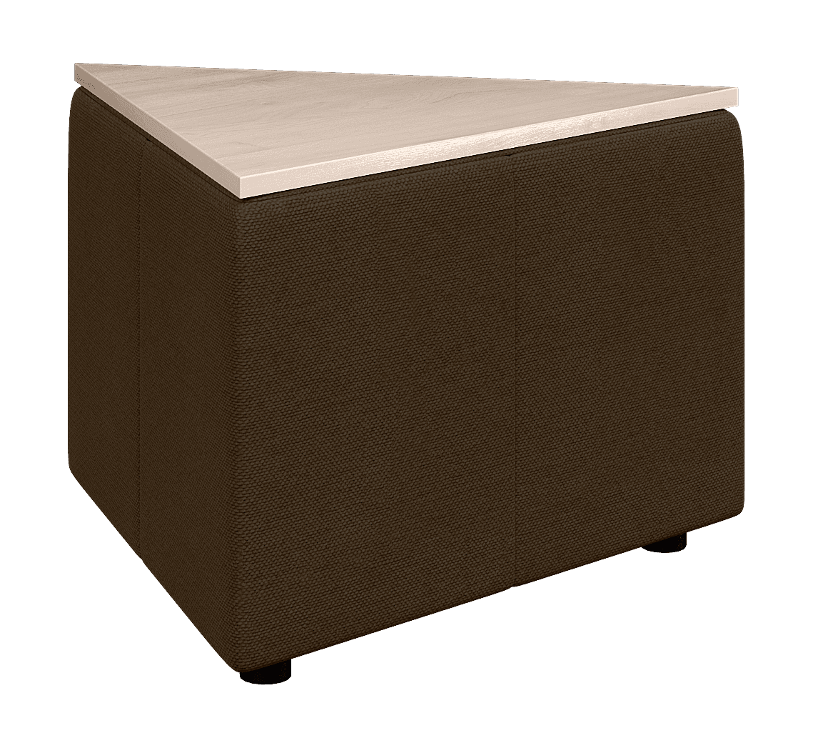 Возможностей размещения треугольного столика ОРИГАМИ достаточно много. Он может использоваться, как самостоятельный элемент или встраиваться в композицию. Из них можно собирать составные столики или использовать для формирования прямых углов в композиции.