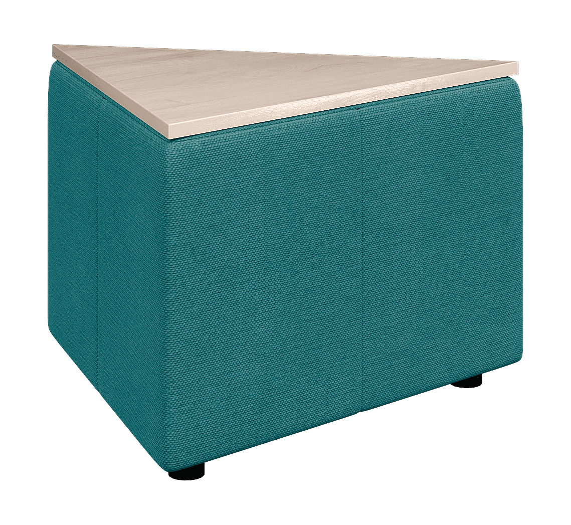 Возможностей размещения треугольного столика ОРИГАМИ достаточно много. Он может использоваться, как самостоятельный элемент или встраиваться в композицию. Из них можно собирать составные столики или использовать для формирования прямых углов в композиции.