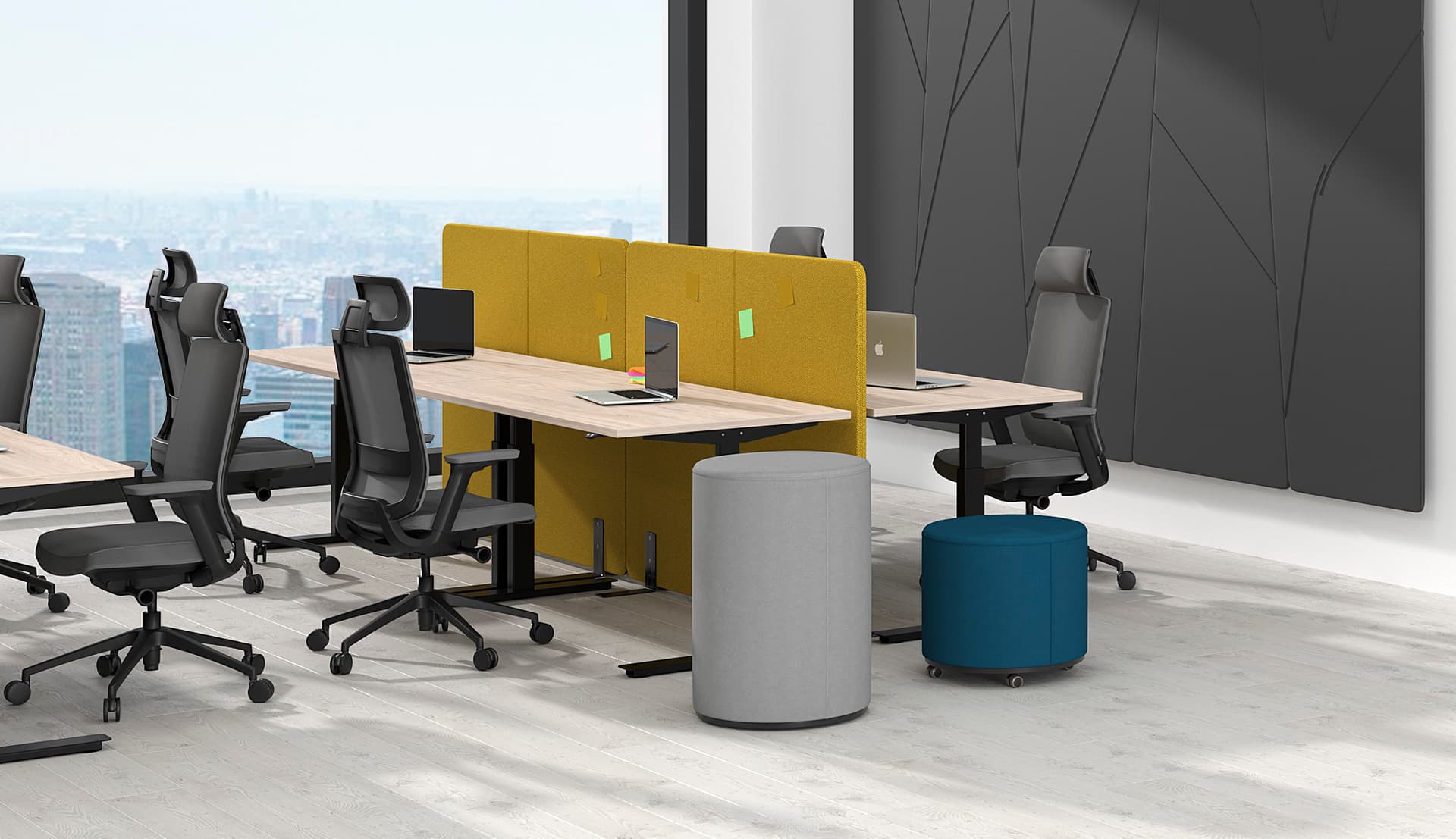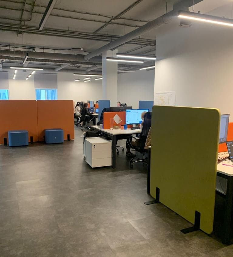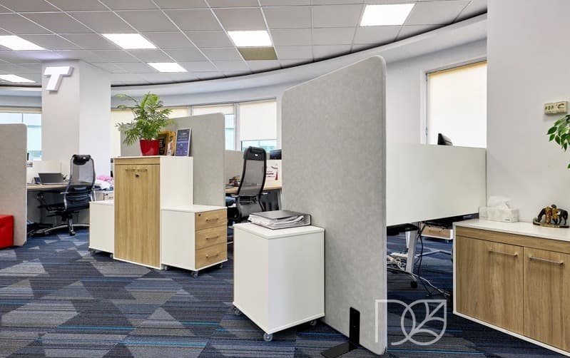 Перегородки ФИКС — стильное и функциональное решение для современного офиса. Они помогают зонировать пространство, создавая комфорт и приватность для работы и переговоров. Модельный ряд включает варианты шириной 80 см — под размер стандартных столов, что позволяет удобно размещать перегородки между рабочими местами. Верхняя часть подходит для заметок, нижняя — для деликатного разделения зон. Опоры высотой всего 0,5 см не мешают передвижению. Перегородки доступны в разных цветах, со съёмными обивками для лёгкого ухода.