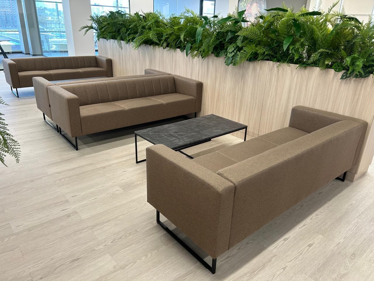 Строгая геометрия и современный дизайн. Минималистичная форма и аккуратные вертикальные прострочки делают коллекцию стильной и универсальной для офисных интерьеров